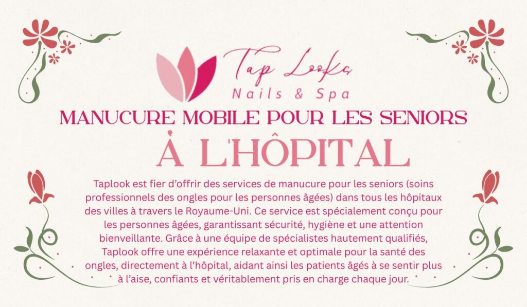 TapLook Nails & Spa offre des soins des ongles personnalisés aux patients, directement au chevet de leur patientèle, en proposant manucure, pédicure et soins spécialisés. Notre équipe se consacre à offrir des soins doux et relaxants dans dix grands établissements de santé de Nevers, dont le Centre Hospitalier de l’Agglomération de Nevers – Hôpital Pierre-Bérégovoy, Polyclinique du Val de Loire, Clinique Les Portes du Nivernais, Centre Hospitalier spécialisé Pierre Lôo, Clinique Tallet, Centre de Rééducation Colbert, Hôpital de jour de Nevers, Hôpital local de Decize (près de Nevers), Centre Hospitalier de Château-Chinon, Hôpital de Cosne-Cours-sur-Loire. Notre objectif est de faire en sorte que chaque patient se sente pris en charge, à l’aise et rajeuni, améliorant ainsi son bien-être même pendant les périodes difficiles.