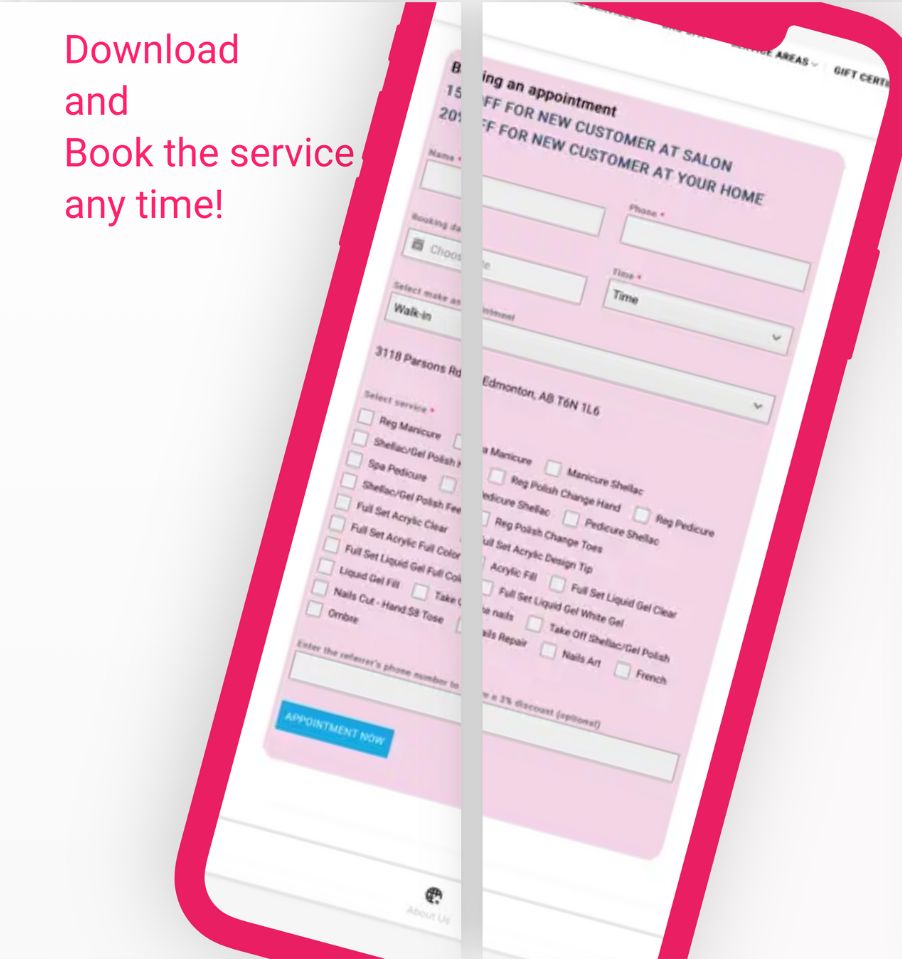 Unna dina händer och fötter en lugnande nagelvårdsupplevelse med vår mobila nageltjänst. Vi erbjuder manikyr, pedikyr och skräddarsydda behandlingar skräddarsydda efter dina önskemål, allt i bekvämligheten av ditt eget hem. Oavsett om du behöver en snabb touch-up eller en fullständig bortskämd session, är våra experttekniker här för att ge säker och professionell service för att säkerställa att dina naglar ser bra ut och känns bra.